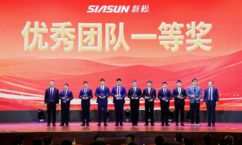 ▲公司党委书记、董事长胡琨元,,,,,总裁张进揭晓优异团队特等奖