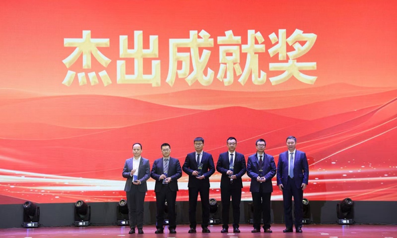 ▲公司党委书记、董事长胡琨元,,,,,总裁张进揭晓优异团队特等奖